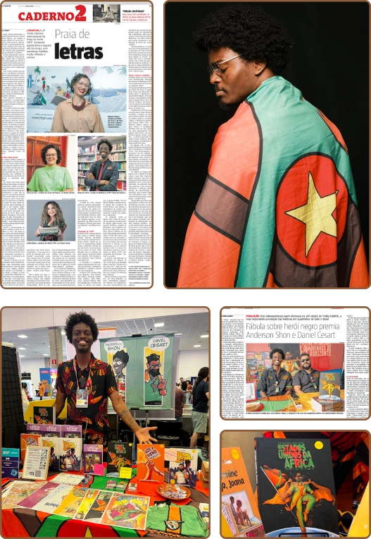 Atuo em eventos literários, feiras geeks, mesas, palestras, oficinas e saraus em diferentes contextos culturais e educacionais, levando a literatura preta, a oralidade e o pensamento crítico para o centro do diálogo com o público.